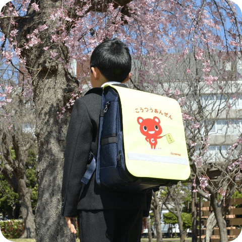 社会貢献活動の一環として、全国の自治体と連携し、全国の新一年生に向けランドセルカバーの寄贈を行っています。23年度は全国5,896校の小学校に30万枚を超えるランドセルカバーを寄贈しました。CO・OP共済キャラクター“コーすけ”のイラストが描かれた黄色地のランドセルカバーは、周囲の目を引き、遠くからでも目立つデザイン。新一年生が安全に登下校できるよう支援しています。