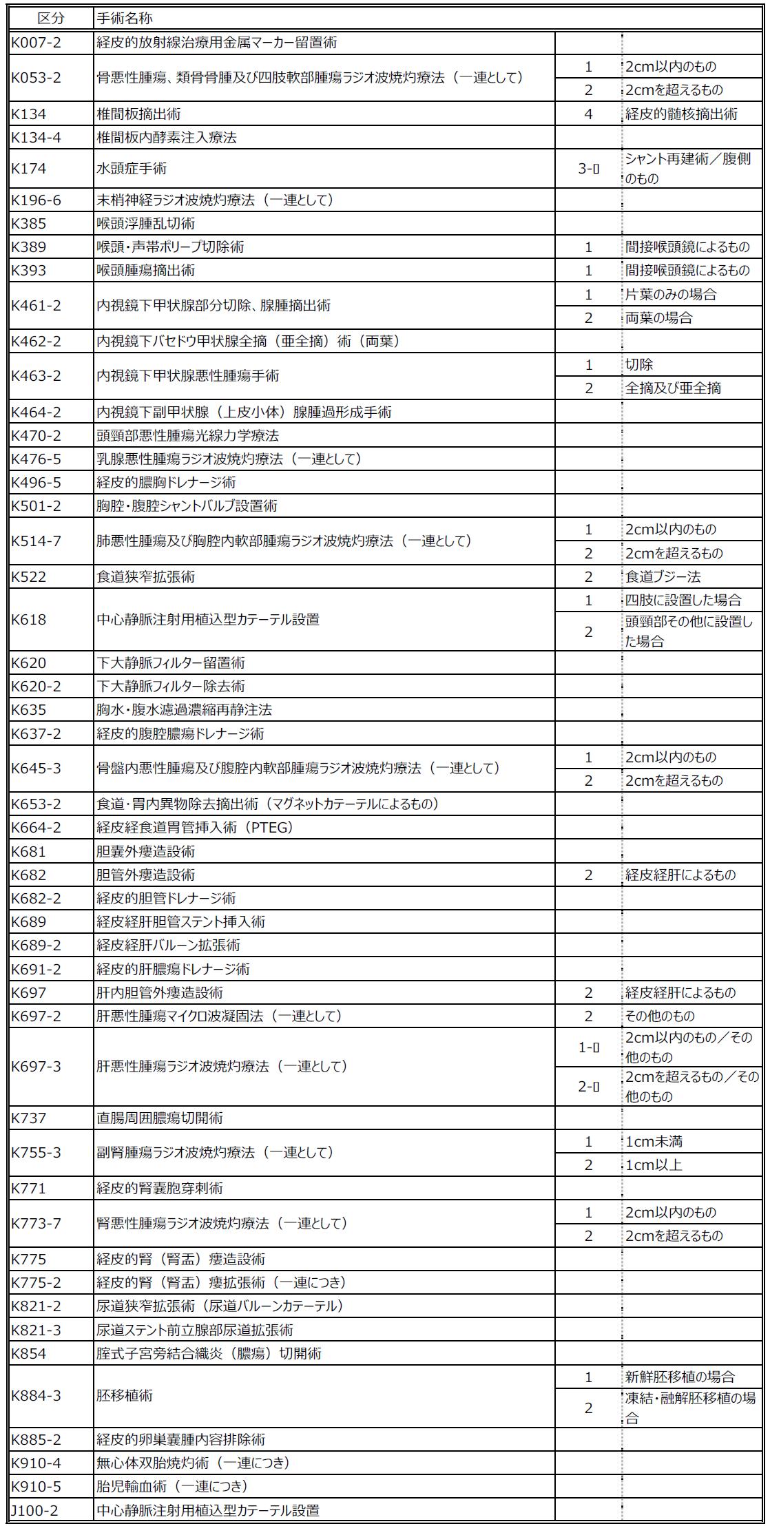 | K053-2 | 骨悪性腫瘍、類骨骨腫及び四肢軟部腫瘍ラジオ波焼灼療法(一連として) | 1 | 2cm以内のもの |
